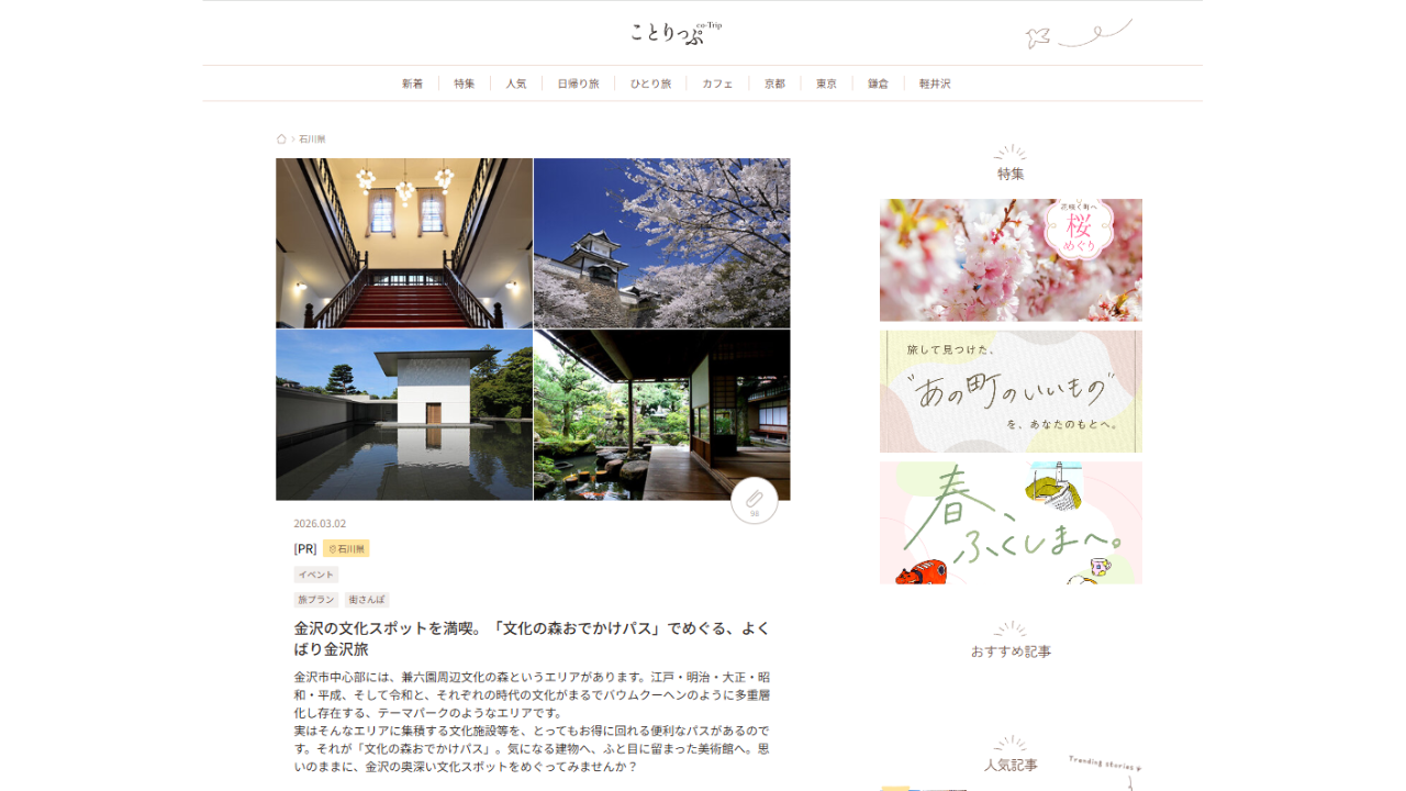 - ・ことりっぷユーザーに人気の観光地である金沢への観光客(リピーター含む)に向けておでかけパスの魅力を掘り下げて発信することで、認知拡大につなげる