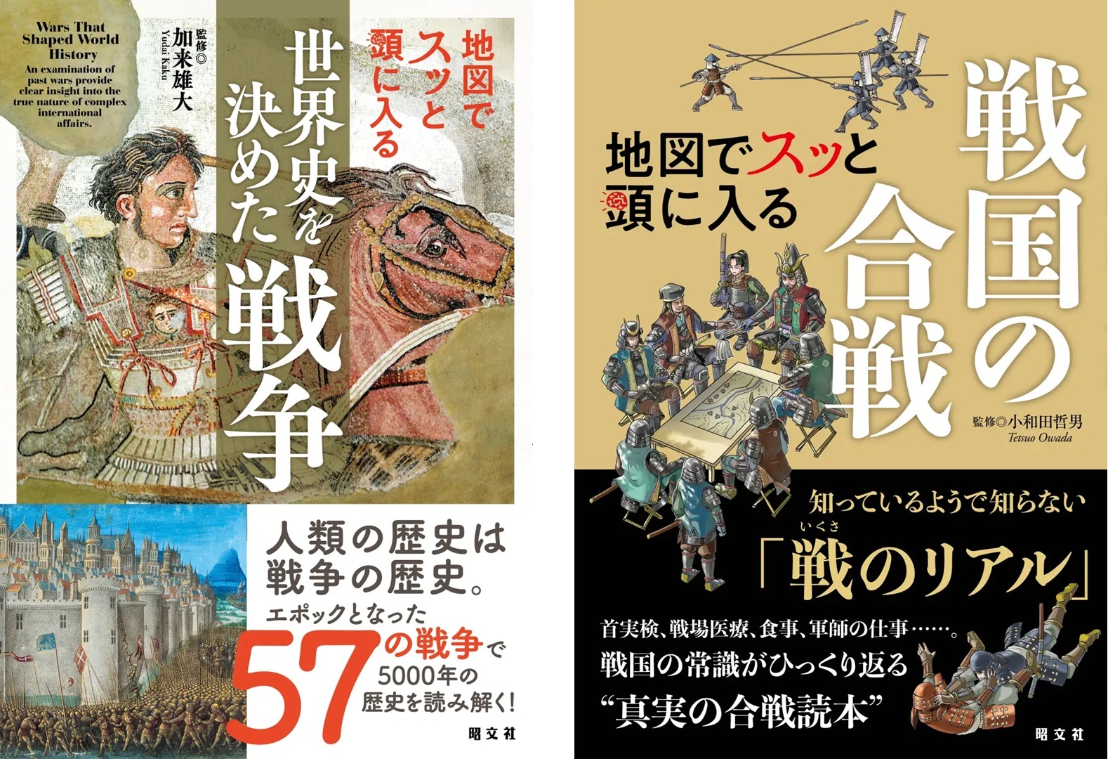 <左:『世界史を決めた戦争』表紙/右:『戦国の合戦』表紙>