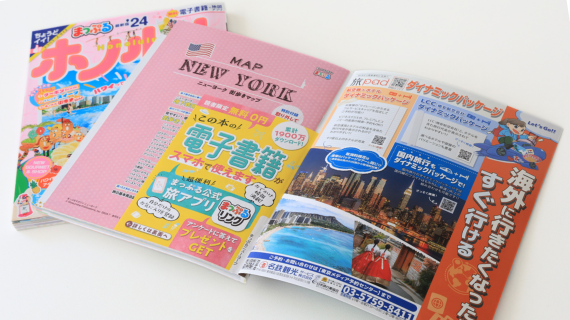 「まっぷる」「ことりっぷ」をはじめとした、市販ガイドブックへ誌面広告を掲載できます。様々なタイトルを取り揃えており、訴求したいターゲット層に合わせて、商品をお選びいただけます。またタイアップ記事広告はお客様のご希望をお伺いし、ご希望内容に応じた誌面構成・デザインを各編集部で制作します。